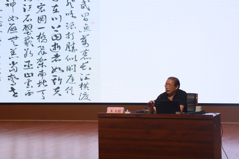 讲座中,朱向前教授以毛泽东在文化领域的卓越造诣为主线,分别从诗词、文章、书法三个维度系统阐释了毛泽东的文化成就及其思想脉络,引领师生从更加生动立体的角度理解这位“文化巨人”。在诗词方面,朱教授以《沁园春·雪》为例进行深入赏析,指出毛泽东诗词既彰显出高度的文化自信,也对中国历史进程与未来发展产生了深远影响。在文章方面,他以“老三篇”——《为人民服务》《愚公移山》《纪念白求恩》为例,概括了毛泽东文章开拓创新、言简意赅、富于国际主义精神的特点,强调这些作品不仅承载着革命年代的价值追求与人民立场,至今仍具有重要的现实意义。在书法方面,朱向前解读了“毛体”书法的艺术渊源与精神内涵,指出其植根于晋唐小楷与魏碑等传统,并融入了毛泽东的革命实践与时代气韵,体现出诗书合一、情怀与理想交融的崇高境界。