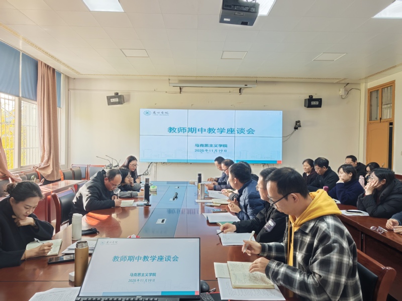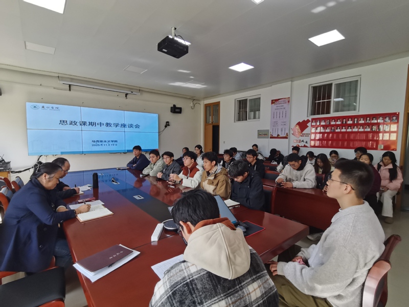 为深入贯彻落实立德树人根本任务,全面提升思政课教学质量与育人实效,及时总结期中阶段思政教学工作成效、破解教学难题,11月19日,马克思主义学院召开期中教学检查学生座谈会和教师座谈会,期中教学检查师生座谈会。会议由学院副院长郑海友主持,各二级学院学生代表参加了学生座谈会,学院全体教师参加了教师座谈会。