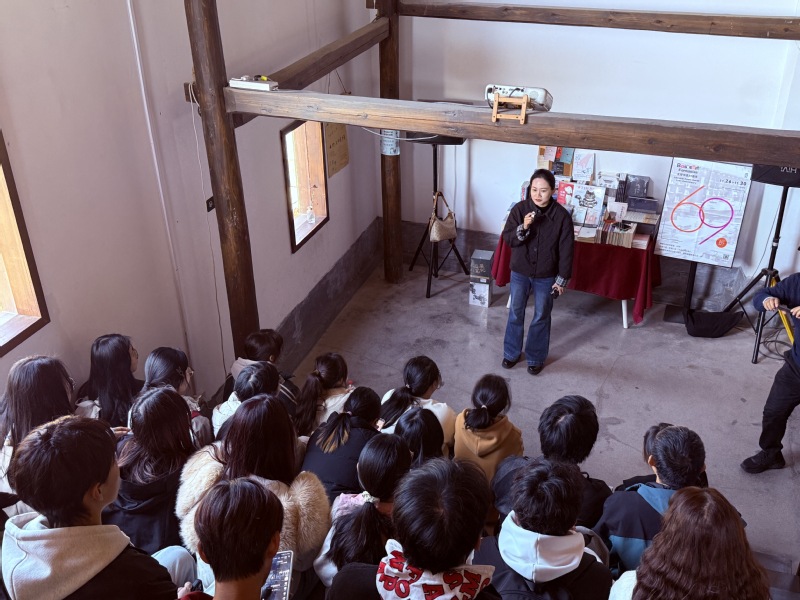 上午,师生团队前往陈家铺村,探访诗意民宿集群。曾经闲置的老屋,在 “文化赋能” 理念指引罡,变身兼具乡土韵味与现代美学的民宿,保留了古村肌理,又注入了新的生命力。在 “飞蔦集”“先锋书局” 等特色民居,师生们深入了解 “古村活化” 的创新路径。马克思主义学院教师蓝翊嘉结合陈家铺创造性转换和创新性发展案例,开展现场教学,引导学生思考 “绿水青山” 与 “金山银山” 的转化逻辑,感悟新时代绿色发展之美。