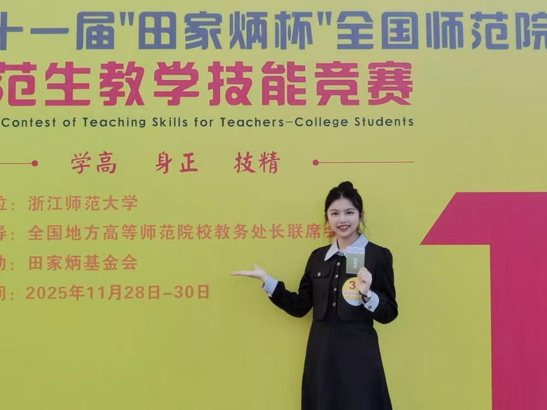 11月30日,第11届田家炳杯全国师范院校师范生教学技能竞赛在浙江师范大学落下帷幕。我校马克思主义学院思想政治教育(师范)22级陈心如同学(指导教师吴春莺、郑海友)获得思想政治教育(高中组)一等奖!这是我校第一次参加参赛,此次获奖实现了我校在该项赛事上零的突破。