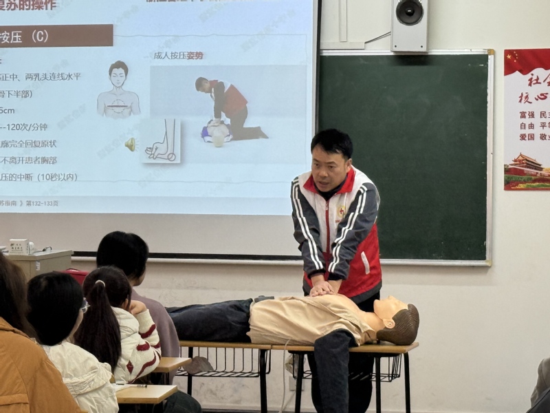 为普及急救知识,提升师生应对突发状况的能力,弘扬“人人学急救,急救为人人”的红十字精神,12月10日下午两点,马克思主义学院联合红十字会,在7B210内成功举办了一场针对心脏骤停患者快速急救的专业培训。本次活动吸引了众多师生积极参与,将理论学习与实操考核紧密结合,取得了良好效果。