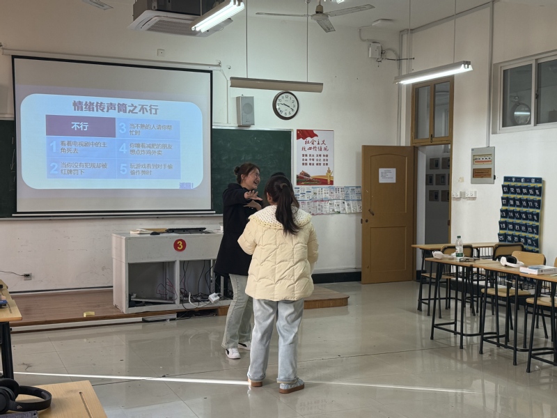 活动现场设置“情绪传声筒”“谁是卧底”“歌声情绪排位赛”三项趣味游戏。首项“情绪传声筒”考验团队默契,参与者通过无声的表情和肢体动作传递特定情境情绪,末位成员需精准还原初始情境。“谁是卧底”环节则以语言交锋为核心,参与者在角色扮演中锻炼逻辑思维与观察能力。压轴的“歌声情绪排位赛”则融合音乐表达,各组需结合抽签获得的情绪等级演唱指定歌曲片段,由队友盲猜排序。新颖的形式与深度的心理引导相结合,让学生在沉浸式体验中学会情绪管理与压力释放。