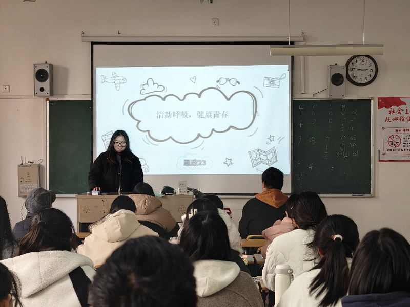 为营造无烟、健康、文明的校园环境,增强学生对吸烟危害的认知,引导学生树立科学健康的生活理念,落实学校控烟工作要求,2025年12月,马克思主义学院各班级陆续召开“清新呼吸,健康青春”主题教育班会,全院学生积极参与。