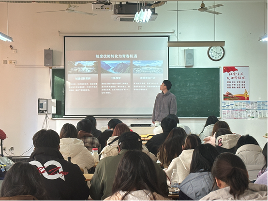 本次主题团日活动,各班团支书在活动过程中认真收集并整理好会议记录、图文总结、心得体会等材料。思政23级团支书组织团员开展“我的专业与强国梦”实践案例分享,5名团员代表结合思政专业就业方向,分享如何将专业知识与国家治理、文化建设等重点领域结合的思考。思政24级团支书组织通过观看中共中央新闻发布会视频片段,重点解读全会提出的“十五五”时期经济社会发展主要目标,并结合思政专业特色,剖析“六个坚持”原则与中国式现代化的内在联系,强调青年在推进国家治理现代化中的责任。思政25级团支书将团员分成若干小组,围绕“全会精神与青年使命的联系”“思政专业学生如何践行全会精神”“新时代青春担当的具体体现”等话题展开讨论,让代表分享讨论成果。